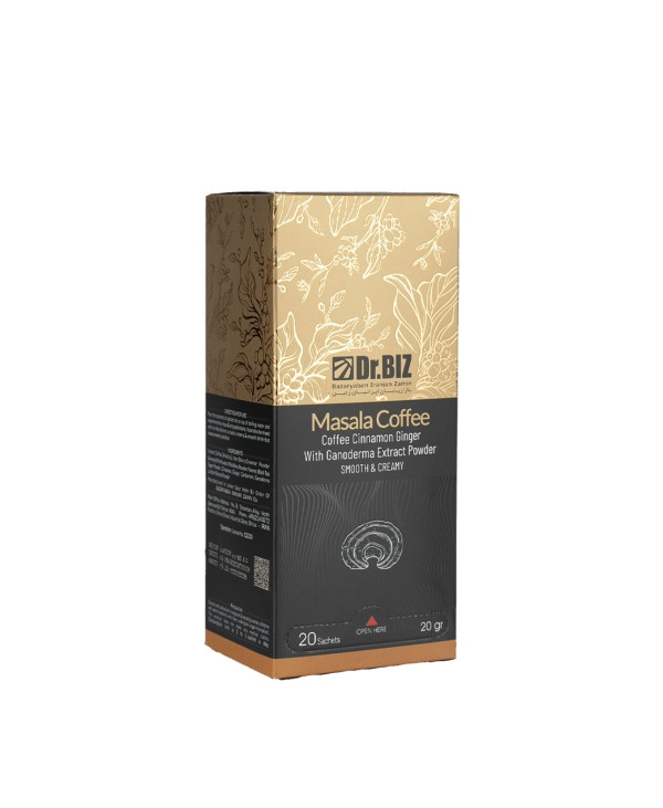 ، نوشیدنی سنتی هند است و قدمت آن به حدود ۵ هزار سال پیش برمیگردد. این نوشیدنی سنتی خواص متعددی برای سلامتی بدن دارد و بین افرادی که طرفدار سبک زندگی سالم هستند، جایگاه ویژه ای پیدا کرده است. ماسالا تا به امروز به عنوان یک نوشیدنی محبوب و پرخاصیت بین همگان شناخته شده و در دیگر کشورها نیز مورد استفاده قرار گرفته است. دکتر بیز با توجه به علاقه مردم به نوشیدنیهای جدید، در فرمولاسیون نوشیدنی ماسالا تغییراتی به وجود آورده و با اضافه کردن موادی مانند قهوه و قارچ گانودرما در ترکیبات این نوشیدنی، محصولی جدید تولید کرده است. قهوه ماسالا محصولی جدید است و از ترکیب قهوه عربیکا، چای سیاه، دارچین، زنجبیل، هل و پودر قارچ گانودرما تهیه شده است. این نوشیدنی علاوه بر خواص بیشمار قهوه و قارچ گانودرما، از خواص ماسالا نیز بهره مند است و خواص متعددی برای سلامتی بدن دارد. طعم خامهای و عطر گیاهان معطری که در این نوشیدنی استفاده شده، طعم بی نظیری را به شما هدیه میدهد. قهوه ماسالا برای افرادی که به نوشیدن قهوه و چای ماسالا علاقهمند هستند، گزینه ی بسیار مناسبی است و در طول روز میتوان از این نوشیدنی استفاده کرد. محصولات سلامت محور بوده و هیچگونه ادعای درمانی ندارد.