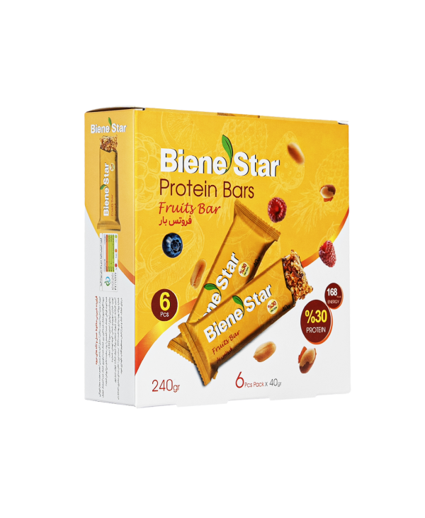 فروتس بار یک محصول خوشمزه و مغذی با ترکیبی منحصر به فرد از مواد اولیه طبیعی است. این محصول شامل جو دو سر پرک به عنوان یک منبع غنی فیبر و افزایش انرژی پایدار، عسل به عنوان یک منبع آنتی اکسیدان، خرما به عنوان منبع انرژی و میوههایی نظیر بلوبری (حاوی ویتامین C و آنتی اکسیدان)، موز (منبع پتاسیم و ویتامین B۶)، تمشک (حاوی ویتامین C)، توتفرنگی (حاوی آنتی اکسیدان) است. این محصول با توجه به مواد اولیه با کیفیت، یک گزینه سالم و خوشمزه برای تامین انرژی و مواد مغذی بدن به حساب میآید